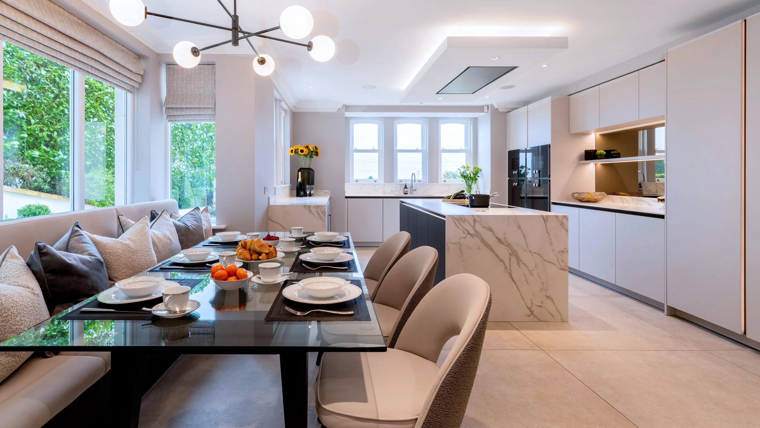 The client envisioned a modern design that also felt warm and family-oriented. Our approach focused on balancing contemporary aesthetics with inviting, comfortable elements that reflect their lifestyle. Spanning three floors, the property offered ample opportunity for transformation. A standout feature is the fully renovated basement, now home to a luxurious indoor pool and state-of-the-art gym, creating a private wellness retreat.